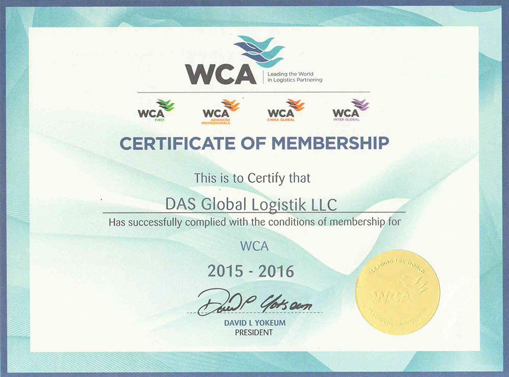 WCA – самая крупная в мире сеть независимых международных транспортных компаний Объединяет более 6245 офисов в 189 странах по всему миру. Членство возможно исключительно при условии высокого уровня стандартов сервиса в рамках международных перевозок.
